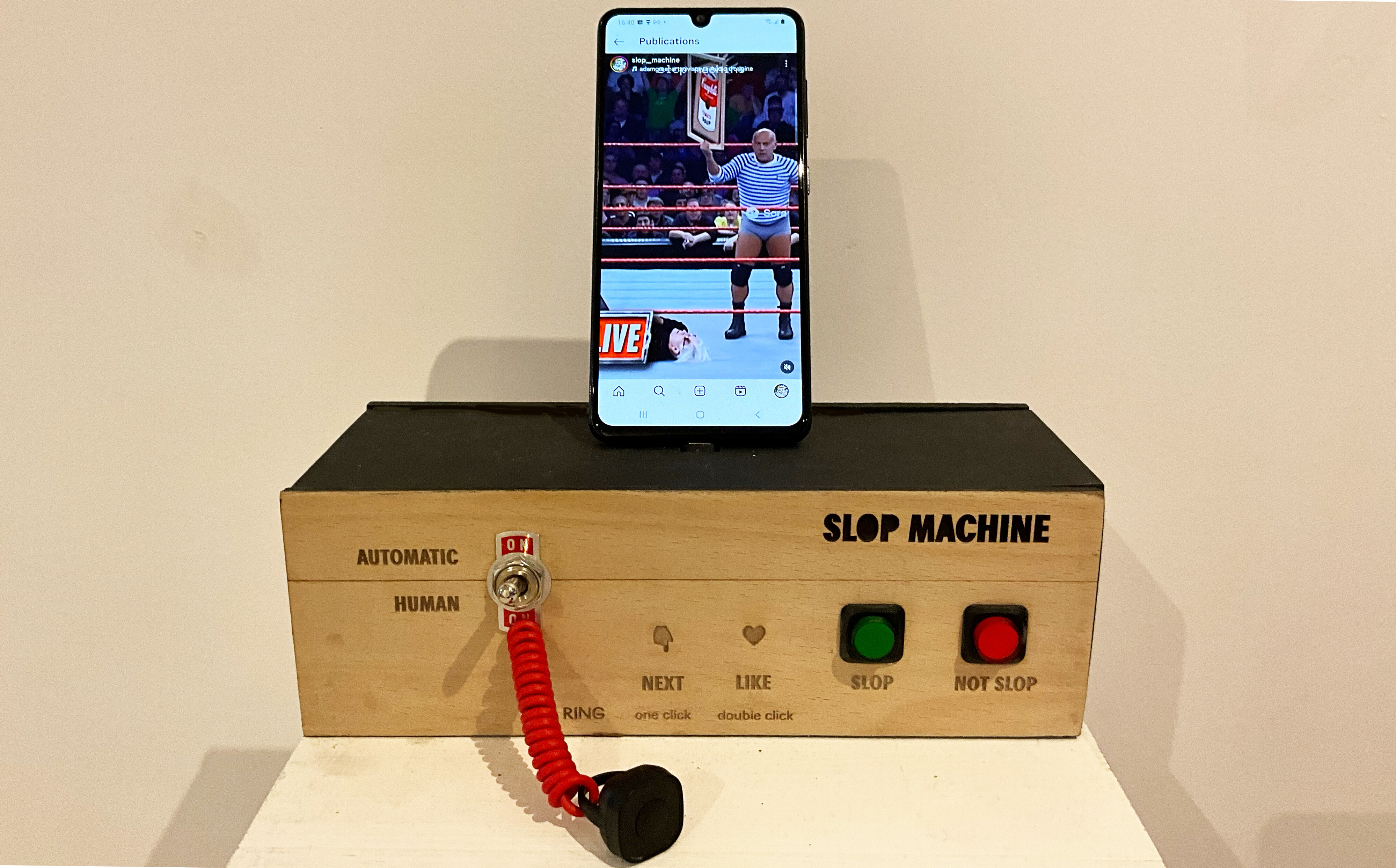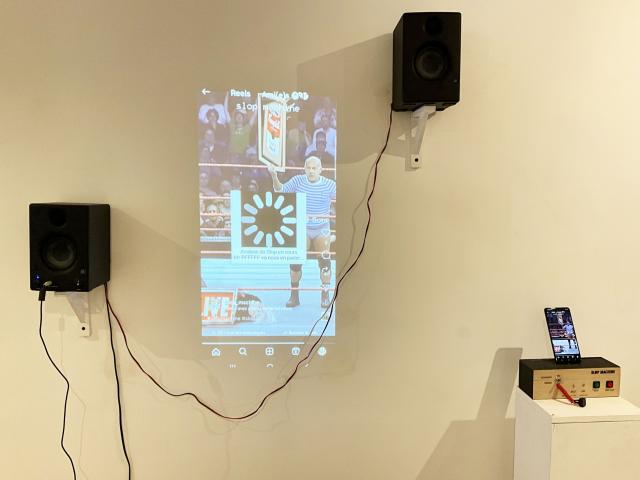 La Slop Machine intègre son public et l’invite à déterminer lui-même la qualité du slop observé, dans un dispositif de mise en abyme qui
